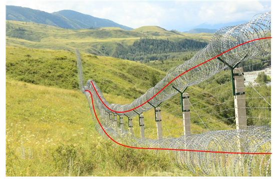When the deployment environment is in the way of a fence, our sensing fiber can be laid in this zigzag pattern. As shown in Figure 1 above.